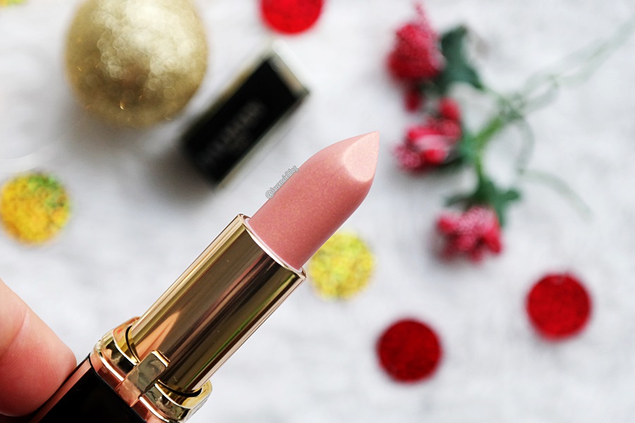 Hayal kırıklığı yaratan ambalajı bir kenara bırakırsak, rujun rengi tam olarak görsellerindeki gibi. açık pembe-şeftali-gül renginin içinde altın rengi ışıltılara (sim değil, ışıltı) sahip. Uygulandığında tamamen mat sonuç veren değişik bir ruj bana göre. Dudakta yarattığı his ise L'Oréal'in mat ruj yapısını bilenlerin aşina olduğu mus-krem arası... Kokusu da tipik L'Oréal ruj kokusu.